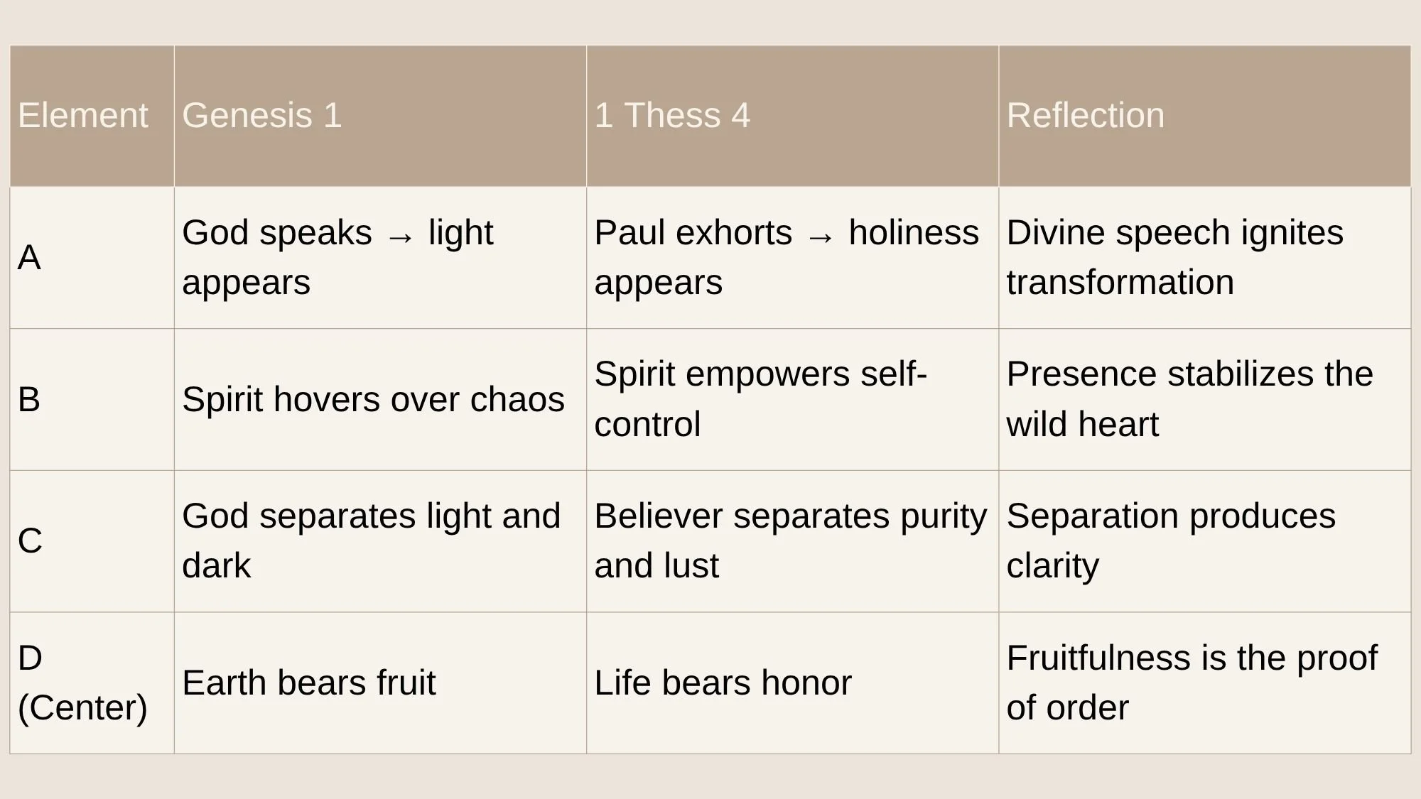 Not a point in time, but a process of initiation. The prefix be- means “within”—as in within the beginning itself. The sages teach: “God looked into the Torah and created the world.” Thus, Genesis 1 is not just history; it is the pattern of how God still creates within us—through structure, word, and Spirit.